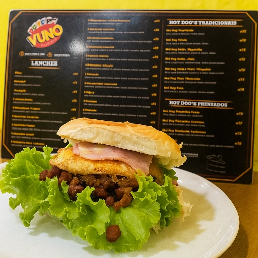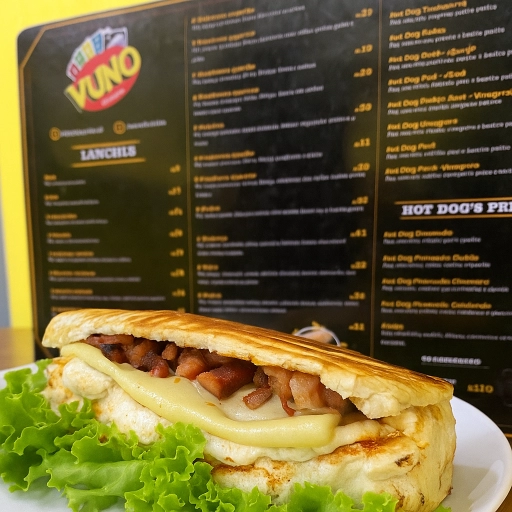 Pão, queijo, presunto, carne, calabresa, ovo, milho, batata palha e alface.