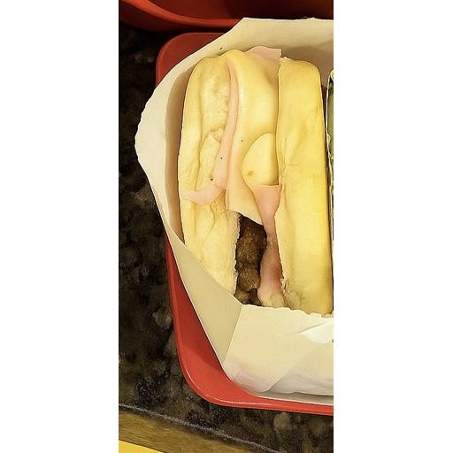 Pão, queijo, presunto, filé de frango, bacon e alface.
